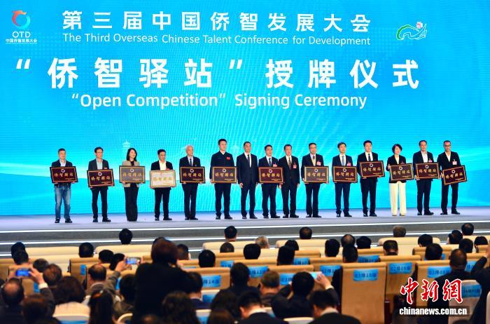 图为举动上举办尾批“侨智驿站”受牌典礼。中新社记者 弛斌 摄